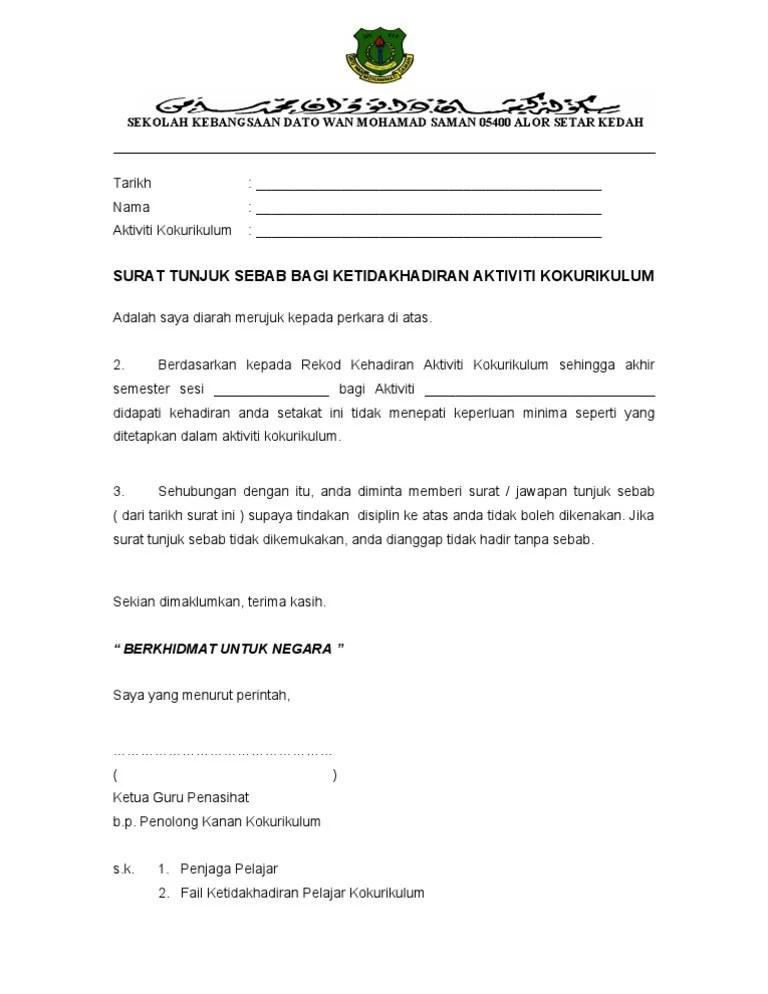 Contoh surat tunjuk sebab tak hadir kerja lewat ke tempat kerja tak hadir kursus lain lain edu bestari.