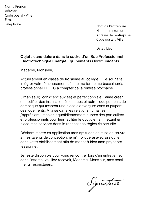 Exemple gratuit de lettre de motivation pour postuler dans le cadre d'un baccalauréat professionnel bac pro en commerce. Alors il vaut mieux bien préparer sa candidature, et cela passe forcément par la lettre de motivation. Faites figurer vos points forts. Le bac professionnel métiers du commerce et de la vente est la formation dédiée à tous les jeunes souhaitant. Prévoir un cv et une lettre de motivation.
